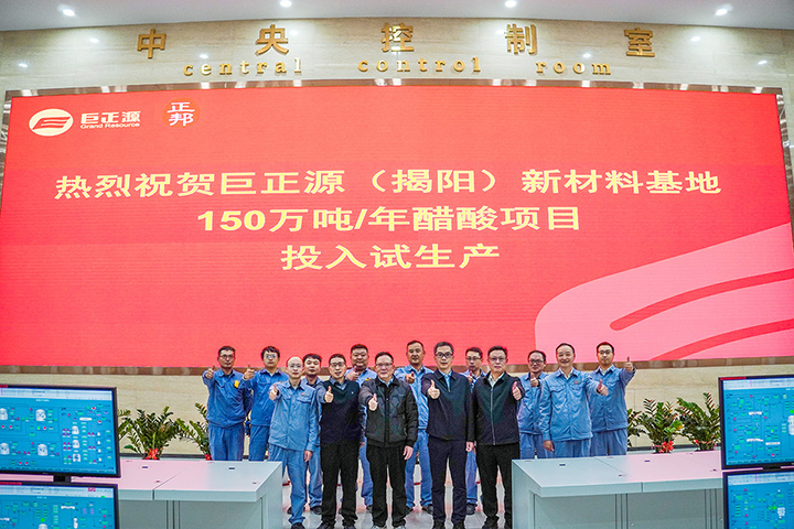 12月31日,巨正源(揭陽)新材料基地150萬噸/年醋酸項目順利完成全部調試程序,一次引入合成氣成功,打通全流程,正式進入試生產階段。廣物控股集團黨委委員、副總經理孔令灼蒞臨現場指導,并對試車安全工作作出重點部署。