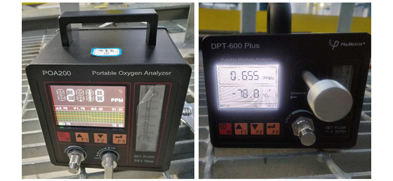 經(jīng)檢測(cè),氧含量及水均已合格,氮?dú)饧兌瘸^99.99%,質(zhì)量?jī)?yōu)于設(shè)計(jì)指標(biāo)。該裝置每小時(shí)生產(chǎn)氮?dú)?0000標(biāo)準(zhǔn)立方米,每小時(shí)生產(chǎn)液氮570標(biāo)準(zhǔn)立方米,可為生產(chǎn)裝置投產(chǎn)、運(yùn)行提供用氣保障。