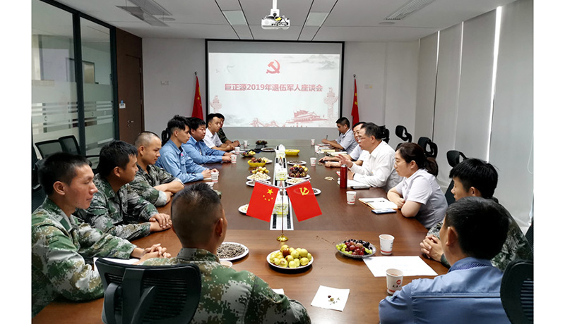 曾一平同志與大家一起共同學習了《習近平關于“不忘初心、牢記使命”重要論述選編》——人民軍隊必須永志不忘的紅色血脈,必須牢記全心全意為人民服務的根本宗旨,代表公司領導班子向退伍軍人們致以誠摯的問候和衷心的祝福,對他們關心和支持巨正源建設表示感謝。曾一平董事長希望大家退伍不褪色,繼續發揚人民軍隊吃苦耐勞、作風嚴謹、服從命令的光榮傳統,不忘初心、牢記使命,為巨正源的高質量發展貢獻力量。